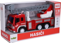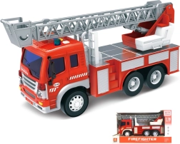 En realistisk brandbil med friktionsdrev vil glæde alle små redningsfolk. Den byder på lys- og lydeffekter, funktionsknapper på kabinen og en udtrækkelig stige. Batterier medfølger, så den er klar til brug med det samme efter udpakning.
