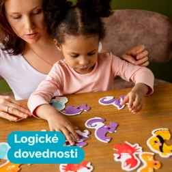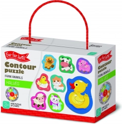 Oplev gårdens verden med simple konturpuzzler, som er perfekte til den første introduktion til puslespil. Hvert af de 8 billeder består af 2 solide brikker, der nemt passer sammen. Børnene træner finmotorik, logisk tænkning og genkendelse af dyr.