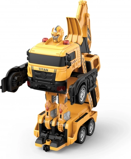 Sjov RC-autorobot, der med ét tryk på en knap transformerer til en byggemaskine/gravemaskine. Den tilbyder kørsel i alle retninger, bevægelig gravearm med manuel styring og nem opladning via USB-kabel. Den ideelle legetøj for fans af robotter og byggemaskiner.