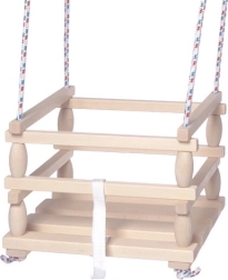 Denne trægyngen er specielt designet til de mindste børn, der allerede kan sidde selv. Takket være den robuste konstruktion og sikkerhedsbarrieren giver den sikker og behagelig gyngen. Gyngen kan bruges både indenfor og udenfor.