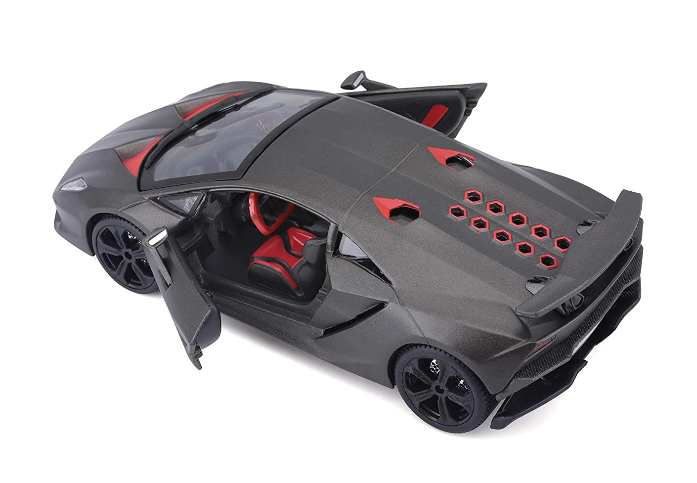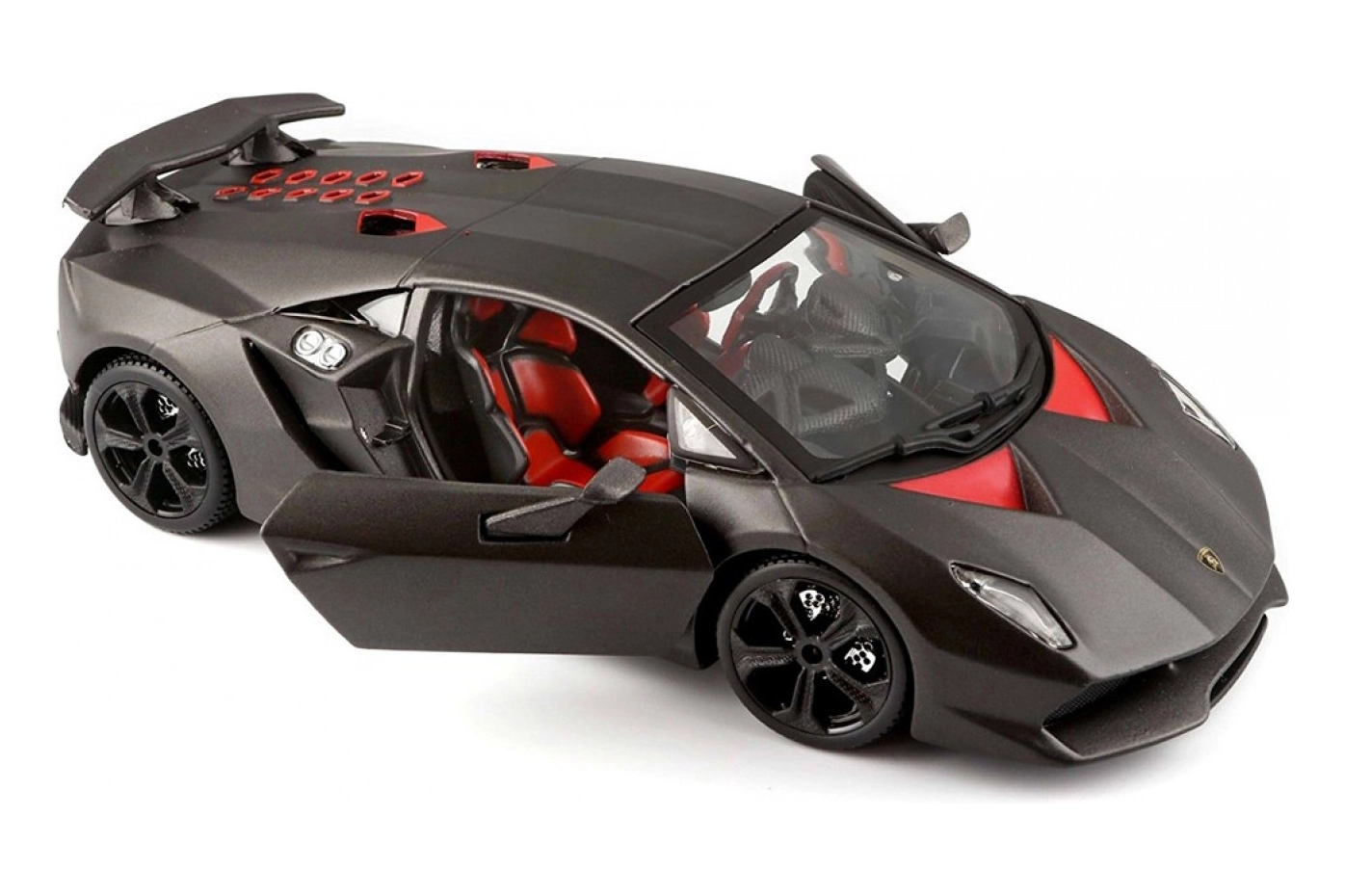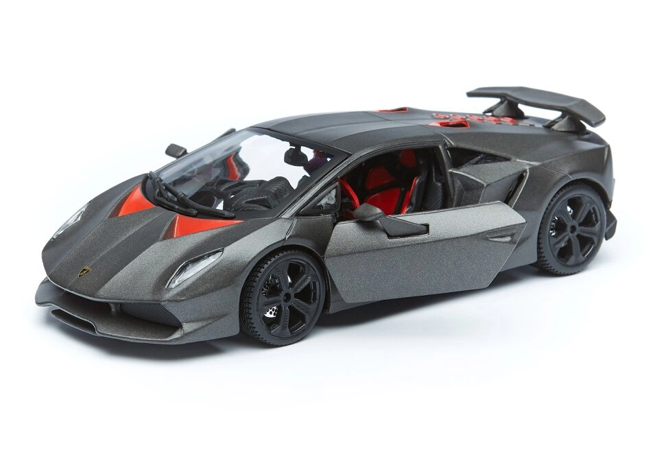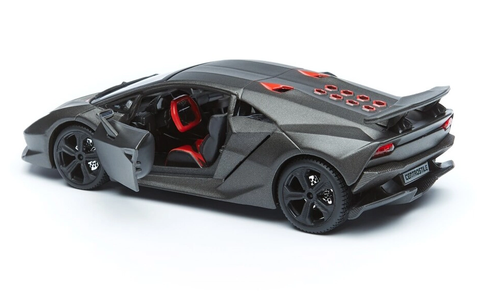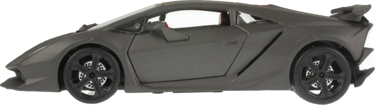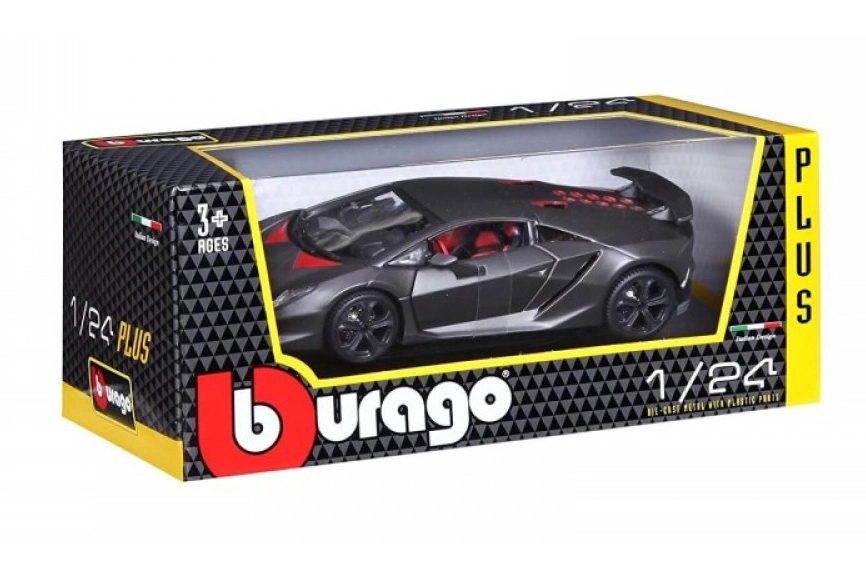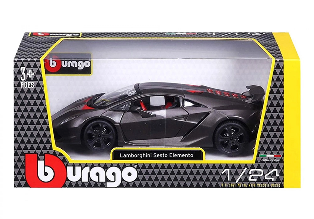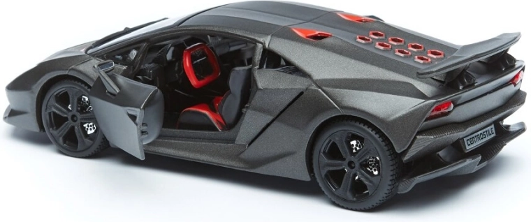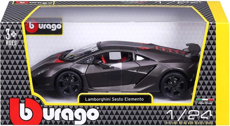 Bburago-modellen 1:24 gengiver trofast de aggressive linjer på supersportsvognen LAMBORGHINI Reventón i elegant metallisk grå. Takket være åbnende saksedøre og et gennemarbejdet interiør skiller den sig ud som en stilfuld dekoration til vitrinen og som et holdbart legetøj til små bilentusiaster.