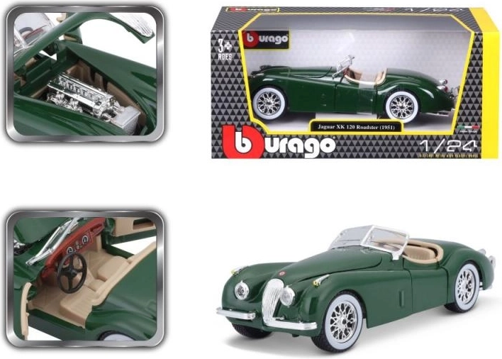 Udvid din Bburago-samling med flere fantastiske bilmodeller i skala 1:24. Metalmodel fra serien Bburago 1:24 Jaguar XK 120 Roadster (1951) grøn