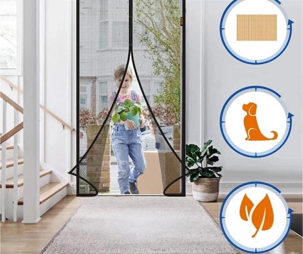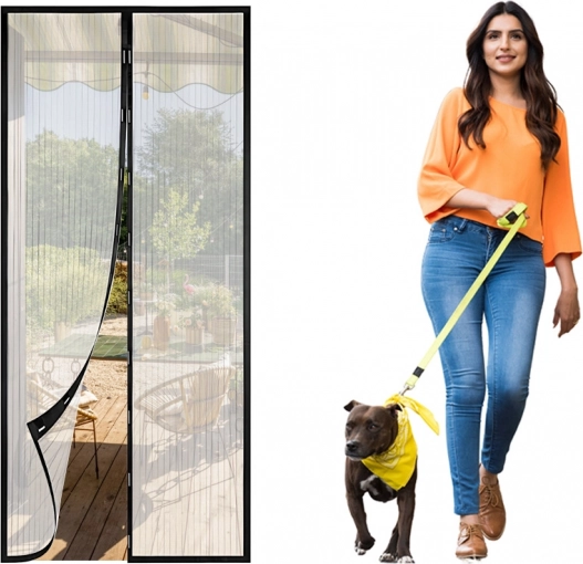 Praktisk myggenet til døre, der effektivt stopper myg, fluer og hvepse, mens det bevarer fri luftgennemstrømning og rigeligt lys. Takket være nem montering med velcro og automatisk magnetlukning er det ideelt til altan, terrasse og hoveddør.