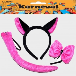 I sættet finder du alt, hvad du har brug for: et hårbånd med katteører, en elegant hals-sløjfe og en matchende hale. Tilbehøret kan nemt kombineres med en sort T-shirt og leggings – klar på få minutter.