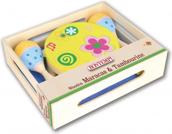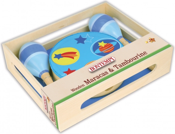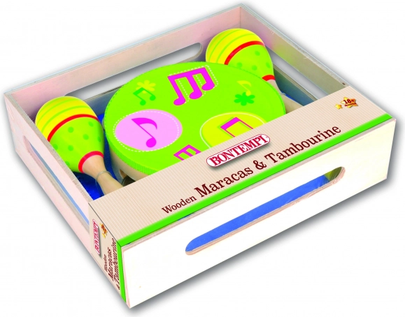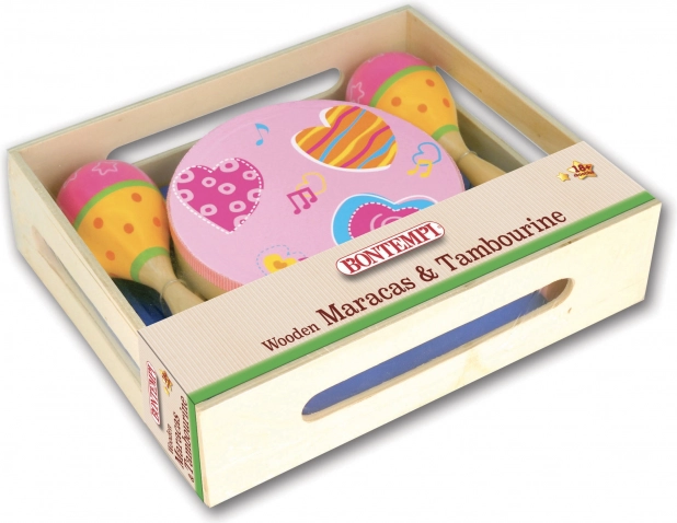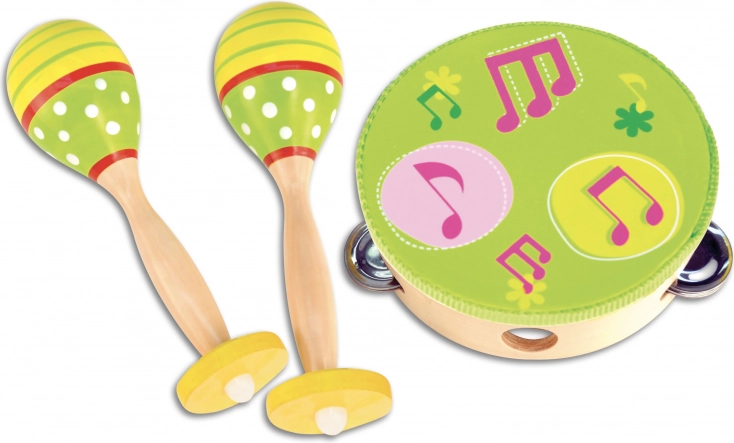 Musiksæt til små musikere, som bringer sjov, rytmisk udvikling og finmotorik. Indeholder 2 trærumba-kugler og en tamburin med 8 bækkener – ideel til de første musikforsøg og hjemmekoncerter.