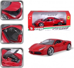 Bburago-modellen gengiver trofast de dynamiske linjer og detaljer på Ferrari 488 GTB i elegant rød. Takket være metalkarosseri, præcis lakering og realistiske hjul fremstår den som en ægte bil i miniature. Åbnelige døre, motorhjelm og motordæksel giver indblik i det gennemarbejdede interiør og bilens indre.