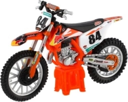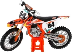 Modellen gengiver realistiske detaljer af den ægte motocross motorcykel, inklusive designelementer og funktionelle komponenter som dæk og styr.