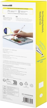 Elegant magnetisk stylus BASEUS Smooth Writing III 3 i 1 kombinerer præcision, alsidighed og holdbarhed. Den tilbyder 3 udskiftelige spidser (disk til tegning, fiberspids til navigation, kuglepen til papir), uden behov for opladning og magnetisk fastgørelse til enheder for maksimal bekvemmelighed.