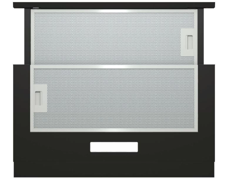 Emhætten har et elegant, moderne look, der nemt monteres under et køkkenskab og bidrager til køkkenets samlede æstetik.