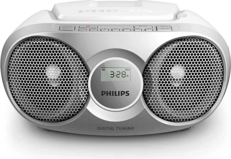Leder du efter en pålidelig og let bærbar afspiller? Denne sølvfarvede boombox er et ideelt valg til daglig lytning. Takket være understøttelse af CD, CD‑R og CD‑RW kan du nyde din disksamling, mens Shuffle- og Repeat-tilstande giver variation i afspilningen.