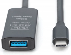 Den aktive USB 3.2 Gen1-forlængerledning fra Digitus tilbyder højhastigheds dataoverførsel med op til 5 Gbit/s over en afstand på 10 meter. Ideel til at forbinde enheder over større afstande uden tab af hastighed.