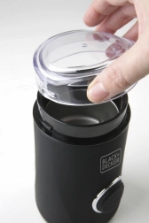 Det gennemsigtige låg gør det muligt at følge kværneprocessen og nemt opnå den ønskede grovhed på kaffen.