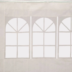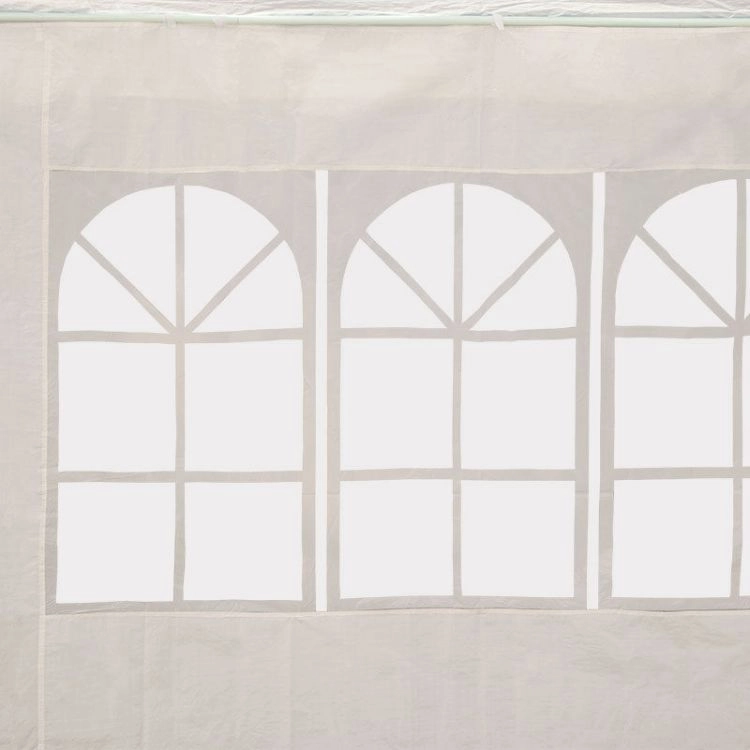 Konstruktionen af tætte, pulverlakerede metalrør med en diameter på 32/25/25 mm sikrer stabilitet og korrosionsbestandighed. Hver benstolpe er fastgjort med pløkker for øget stabilitet. Tag og vægge er fremstillet af slidstærkt PE-stof (100 g/m2) i elegant hvid.