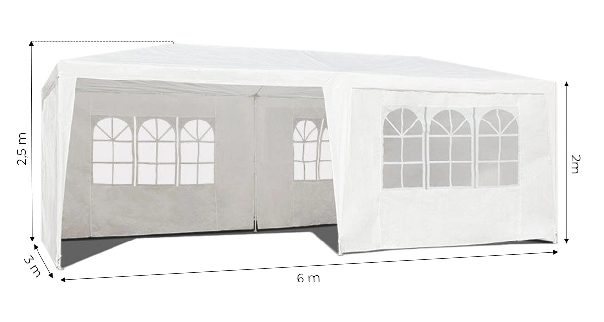 Havepavillon MultiGarden forvandler din have til det ideelle sted for særlige sammenkomster. Med målene 3x6x2,5 m tilbyder den rummelig komfort til udendørs begivenheder som banketter, bryllupper eller familietræf. Den beskytter effektivt mod sol og regn og skaber en hyggelig atmosfære.