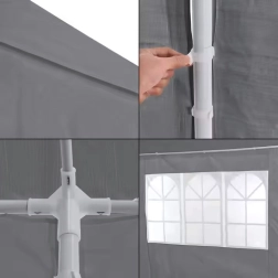 Teltet er kendetegnet ved stærke pulverlakerede metalrør med diameter 32/25/25 mm, som sikrer stabilitet og korrosionsbestandighed. Den robuste konstruktion garanterer lang levetid selv ved hyppig brug. Hver teltstang er sikret med pløkker mod vind, hvilket bidrager til stabiliteten. Tag og vægge er fremstillet af slidstærkt, vandtæt polyethylen med en densitet på 100 g/m².