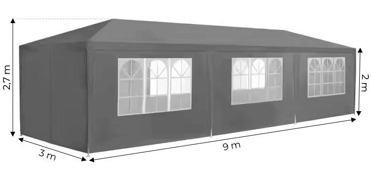 Det komplette havetelt fra MultiGarden er den ideelle løsning til haver, kolonihaver og arrangementer. Denne rummelige pavillon med målene 3x9x2,7 m giver behagelig plads til udendørs begivenheder som banketter, bryllupper eller store familiesammenkomster. Modstandsdygtig over for sol og regn, den solide konstruktion giver pålidelig beskyttelse i al slags vejr.