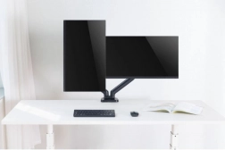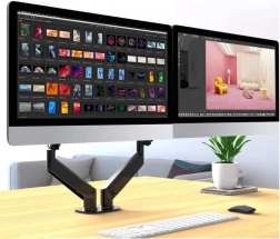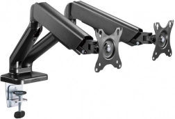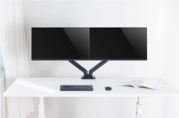 Stativet er ideelt til optimering af din arbejdsplads. Det tillader nem justering af skærmenes position med et enkelt tryk, hvilket sikrer optimal komfort og ergonomi. Fastgøring til skrivebordet via klemme sikrer optimal stabilitet og sikkerhed.
