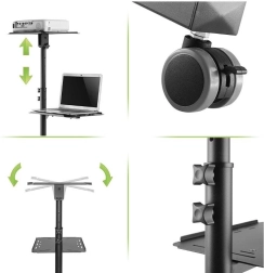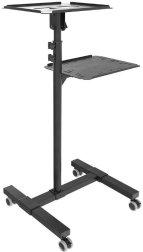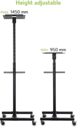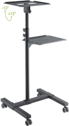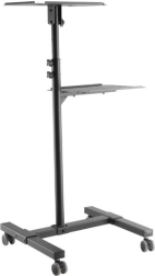 Det mobile metalbord er en praktisk løsning til præsentationer, træning eller konferencer. Takket være to hylder giver det rigelig plads til projektor, bærbar og andet udstyr. Den øverste hylde er justerbar i højde i intervallet 950 til 1450 mm og tillader tilt 766; hvilket sikrer en optimal projektionsvinkel.