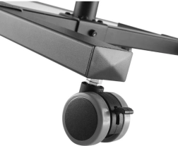 Den nederste hylde i en højde af 685 mm giver et stabilt sted til bærbar eller andet tilbehør. Bordet er udstyret med fire hjul, hvoraf to har bremse, som muliggør nem flytning og sikrer stabilitet under brug. Det er lavet af kvalitetsstål med pulverlakering, hvilket sikrer lang levetid og holdbarhed. Montering er nem og kræver ikke specielt værktøj takket være tommelskruer.