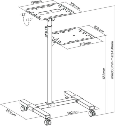 Øverste hylde på bordet tillader justering af højde fra 950 til 1450 mm og tilt på 766, hvilket sikrer en optimal projektionsvinkel til dine behov.
