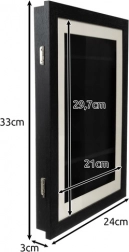 Installationen er hurtig og uden boring – i pakken finder du sporfrie kroge med søm, som ikke beskadiger væggen. Sikker akryl “glas” og holdbar MDF sikrer lang levetid selv i børnemiljø. Produktet er desuden omhyggeligt beskyttet til transport med plastikhjørner og en solid kasse.