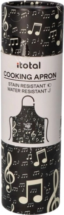 Stilfuldt køkkenforklæde med nodemotiv i tube. 100% polyester, mål 68×78 cm, to lommer 17×15 cm. Slidstærkt, nem vedligeholdelse, perfekt gave.