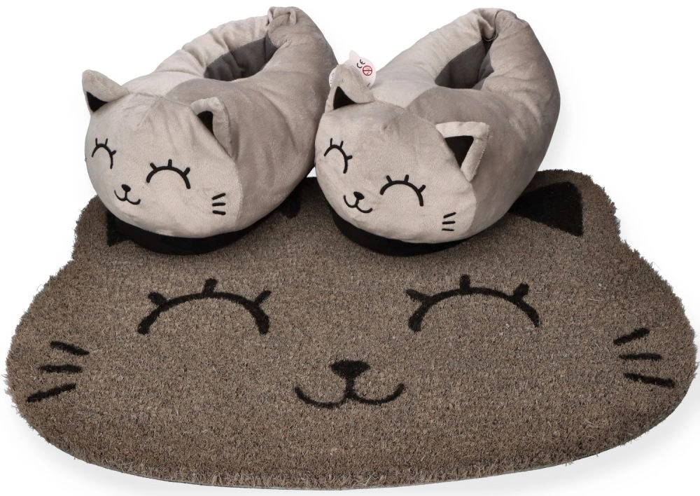 Sød dørmåtte formet som en kat, der byder gæster velkommen og hjælper med at holde indgangen ren. Den er lavet af et slidstærkt materiale, som effektivt skraber snavs af fodtøjet og tilbyder skridsikker komfort samt nem vedligeholdelse ved støvsugning. Ideel til lejligheder, huse, restauranter, hoteller og kontorer.