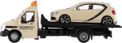 Denne model af en autotransporter med personbil bringer et stykke af den virkelige verden ind på børneværelset. Præcise proportioner i skala 1:43, kombinationen af metal og plast samt markante farvevarianter sikrer et attraktivt udseende og holdbarhed under leg.
