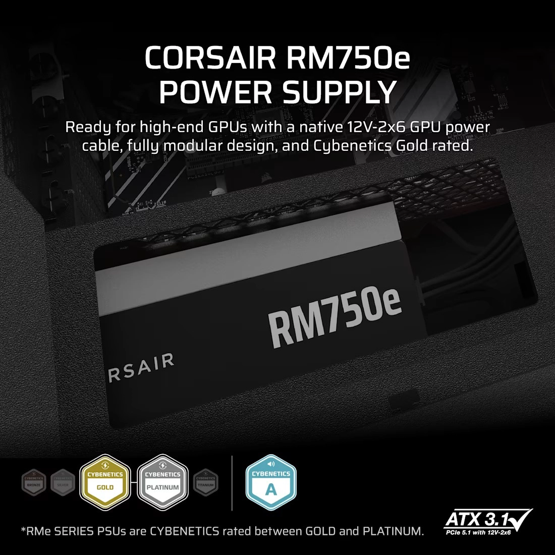 Corsair RM750e er det ideelle valg til både kraftige gaming- og arbejds-PC’er. Den tilbyder stabil strømlevering, høj effektivitet med reducerede tab og støjsvag drift. Takket være den fuldt modulære konstruktion tilslutter du kun de kabler, du virkelig har brug for, hvilket forbedrer luftgennemstrømningen og kabinettets æstetik.