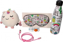 Denne stilfulde øjenmaske med farverigt enhjørningemotiv er ideel til søvn, afslapning og rejser. Takket være den bløde tekstile overflade er den behagelig at røre ved og begrænser effektivt indtrængning af lys, så du kan nyde uforstyrret hvile når som helst, dag og nat.