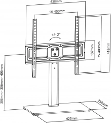 Dens elegante base af hærdet glas giver stabilitet og pålidelighed op til 40 kg. Takket være skridsikre puder beskytter den overfladen mod ridser. Stativet har 3 niveauer af højdeindstillinger (306/356/406 mm) til individuel tilpasning af skærmhøjden til dine behov.