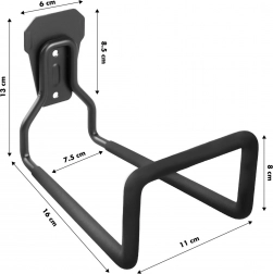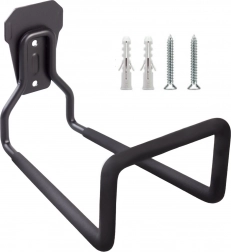Hold din garage eller dit værksted organiseret med denne praktiske vægmonterede holder. Takket være den solide og holdbare metalkonstruktion er den ideel til ophængning af forskellige genstande såsom dæk, cykler eller havevandslanger. Holderen kombinerer enkelt design og pålidelig funktionalitet.