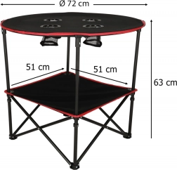 Det særlige design med åbninger til drikkevarer sikrer, at dine drikkevarer altid er lige ved hånden, og at bordet forbliver stabilt. Et ideelt valg for dem, der sætter pris på komfort og praktikalitet under camping, picnics eller fiskeri. Dets fremragende udseende og funktionalitet gør det til et enestående produkt på markedet.