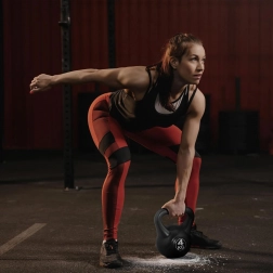 Formen og det forskudte tyngdepunkt i kettlebellen øger træningens effektivitet, forbedrer stabilitet og koordination.