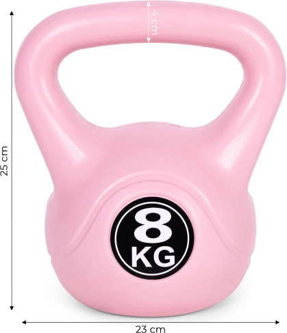 Den holdbare plastoverflade er let at vedligeholde, og det indre cementkerne giver stabil vægt. Kettlebellen er velegnet til hjemmetræning, cirkeltræning og som supplement til rehabiliteringsøvelser – uden krav om meget plads.