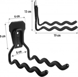 Vægholder Maclean MC-486 er et yderst funktionelt og pålideligt redskab til opbevaring af forskelligt udstyr. Dens konstruktion af kvalitetsstål sikrer, at den kan bære op til 30 kg – ikke kun cykler, men også værktøj, stiger, haveslanger og andre nødvendigheder.