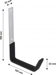 Monteringen er hurtig og enkel – pladen med to monteringshuller sidder sikkert på væggen, og krogen tåler daglig belastning. De praktiske mål 180 × 105 × 55 mm og den ergonomisk udformede, gummibelagte krogdel øger sikkerhed og komfort i brugen.