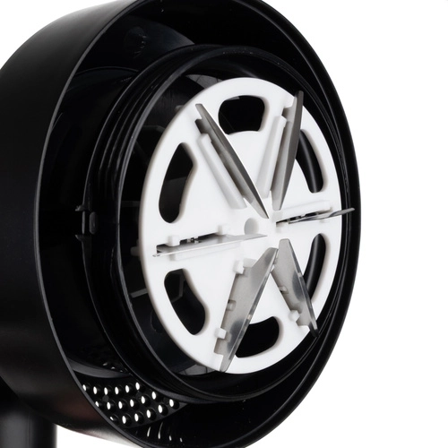 Vælg 7500, 8500 eller 11000 omdr./min afhængigt af stoftypen. De flydende knive og plastnettet beskytter fibrene og sikrer et præcist, sikkert snit.