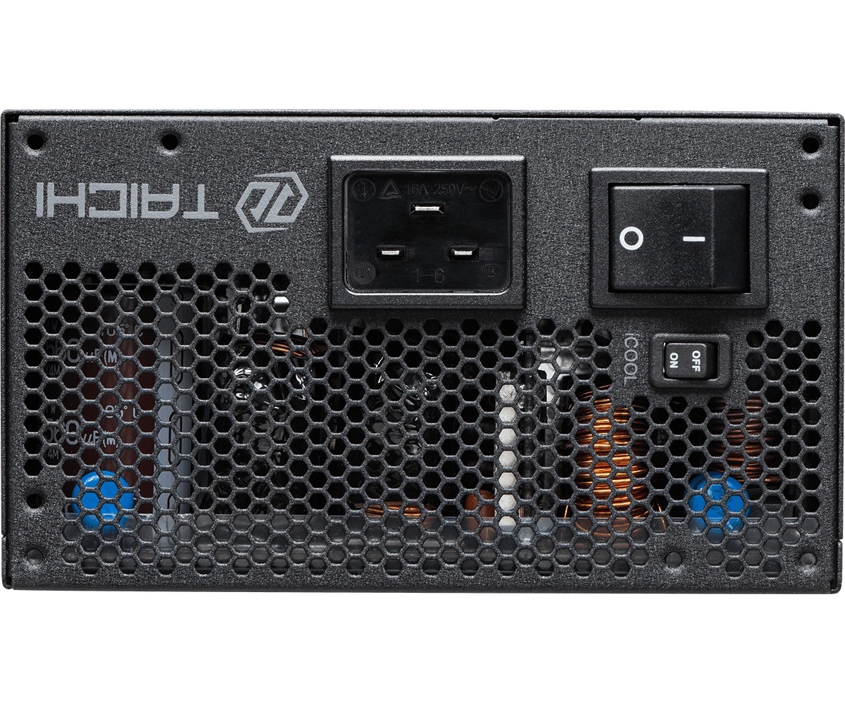 ASRock TAICHI 1650W er en premium strømforsyning til krævende brugere og overclockere. Med 80 PLUS Titanium-certificering opnår den enestående effektivitet, reducerer forbrug og varmetab og sikrer stille drift. Fuld støtte til ATX 3.1 og PCIe 5.1 betyder parathed til de nyeste grafikkort og processorer, inklusive pludselige strømhug.