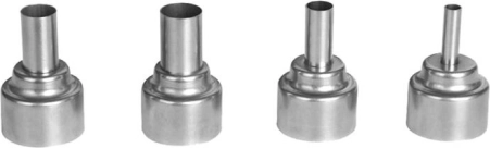 Tilbehør: fire luftdyser til forskellige anvendelser og koldluftsfunktion for komfortabelt arbejde.