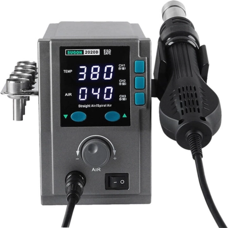 Oplev den professionelle ydeevne fra SUGON varmluftslodde-stationen, designet til både fagfolk og passionerede gør-det-selv- entusiaster inden for elektronik. Den tilbyder omfattende muligheder for regulering af temperatur og luftflow, hvilket gør den ideel til forskellige loddeopgaver.