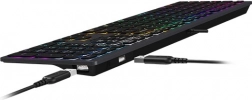Praktiske 2× indbyggede USB-porte kan bruges til tilslutning af periferiudstyr eller hurtig opladning af enheder. Lavprofilerede “chocolate”-taster og ultratyndt chassis giver behagelig skrivning selv i mange timer.