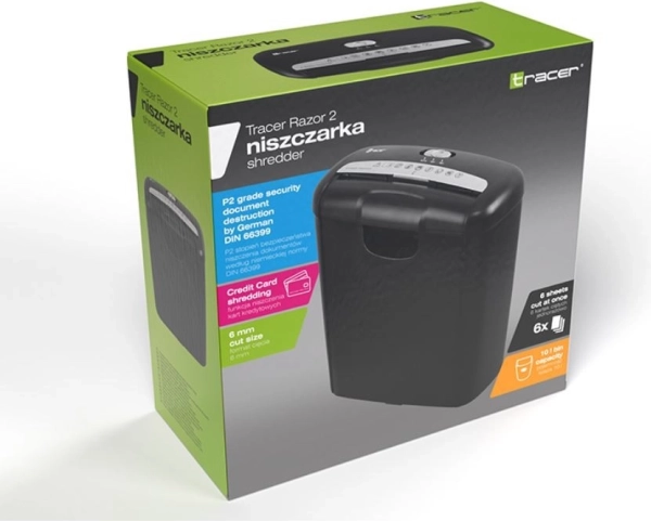 TRACER Razor 2 leverer pålidelig og sikker makulering af almindelige kontordokumenter i hjemmet. Den brede indføring og kapacitet på op til 6 ark gør arbejdet mærkbart hurtigere, mens 6 mm strimmelklip sikrer beskyttelse af følsomme oplysninger på P2-niveau (DIN 66399). Med muligheden for at makulere betalingskort beskytter du også personlige data ud over papirdokumenter.