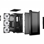 Dynamisk ARGB‑belysning for og inde i kabinettet understreger det moderne look. Sidepanelet i hærdet glas fremhæver dine komponenter.