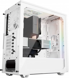Takket være den gennemtænkte indre opbygning rummer kabinettet lange grafikkort, høje tårn‑CPU‑kølere og tilbyder valgfri vertikal GPU‑montering. Understøttelse af vandkøling med radiatorer op til 360 mm udvider byggemulighederne. Hærdet glas i siden fremhæver dine komponenter, og kabelstyring gør det let at opnå en ren og overskuelig montage.