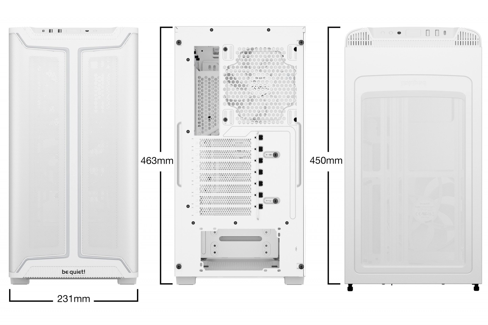 Pure Base 501 DX hvid er designet til maksimal køling og stille drift. Frontpanel i mesh og ventileret top muliggør fremragende airflow, mens tre forudinstallerede Pure Wings 3 140 mm PWM‑blæsere sikrer enestående lufttryk og stabile temperaturer selv i kraftige systemer. Designet fuldendes af diskret ARGB‑belysning med mulighed for tilpasning.