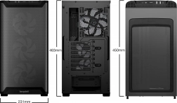 be quiet! Pure Base 501 LX ARGB er et gennemtænkt midi tower‑kabinet til krævende gamere og skabere, der ønsker et elegant look, effektiv køling og fejlfri kabelstyring. Front- og topanel med gennemstrømningsdesign giver optimal airflow, mens fire Light Wings LX PWM‑blæsere skaber fantastiske lyseffekter og højt statisk tryk for pålidelig varmeafledning.