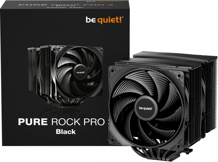 be quiet! Pure Rock 3 Pro Black leverer kraftig og pålidelig varmeafledning til nutidens multi‑core CPU’er. Dobbelt tårn med tætte finner og seks 6 mm heatpipes spreder effektivt varmen, mens det parvise Pure Wings 3‑blæsere med PWM‑styring opretholder optimalt luftflow og lavt støjniveau selv under belastning. Den tragtformede luftudgang forbedrer tryk og gennemstrømning gennem køleprofilen.