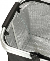 Takket være den sammenklappelige konstruktion er termokurven maksimalt pladsbesparende og let at transportere, når den er tom.