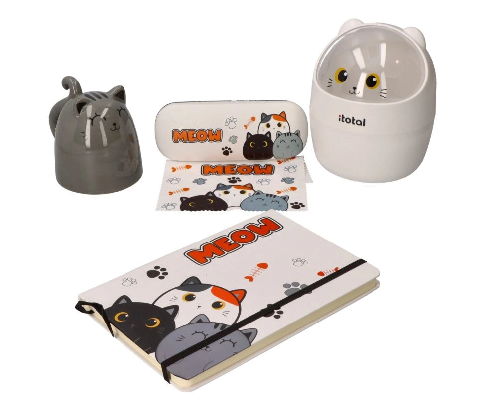 Den hvide katteface med gule øjne giver dit arbejdsområde et legende udtryk og motiverer til orden uden at gå på kompromis med stilen.